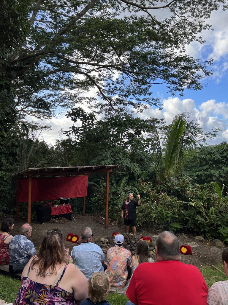 When I was looking for a Lu’au, I wanted something authentic and educational. I feel like a lot of lu’aus are more about the performance, big productions, and volume of tourism. I truly was looking for a cultural experience. I read about multiple lu’aus on the island of Oahu, but in regards to the location and authenticity, one small one kept coming up, Experience Nutridge at the Nutridge Estate. Let me tell you, you may have never heard of this lu’au because it is significantly smaller, like 150 people intimate. They offer transportation but since we had a vehicle we drove ourselves. Since were early they directed us up to the Tantulas Lookout, WOW… the view of Waikiki, Diamond Head and even the North Side was spectacular. We were welcomed to a beautiful display of culture, education, and drinks. There is some walking through the forest, and up/down some hills so wear appropriate shoes. We were able to learn about the culture but also see first hand the performances while learning about the history – we were all so appreciative of that. Before we sat down to eat, we got to experience the most BEAUTIFUL sunset from the mountain, it was a moment. For us, immedietly after the sunset, the downpour of rain came, so we quickly got under the tent, but shortly after the food was ready and it did not disappoint! The menu consisted of: Salad, steamed rice, Kaluaa pua’a, pulehu chicken, mini lau lau, sweet bread, pineapple, chocolate cake, and haupia. After dinner there was a variety of dances, lessons, and games. If I am being honest we did not stay late into the evening because one: some of us got wet and it was windy on top the mountain we did NOT want to get sick for the remainder of the trip and two: we wanted to beat traffic out and down the mountain. If you’re interested in attending Experience Nutridge yourself, you can go to their website for availability here.